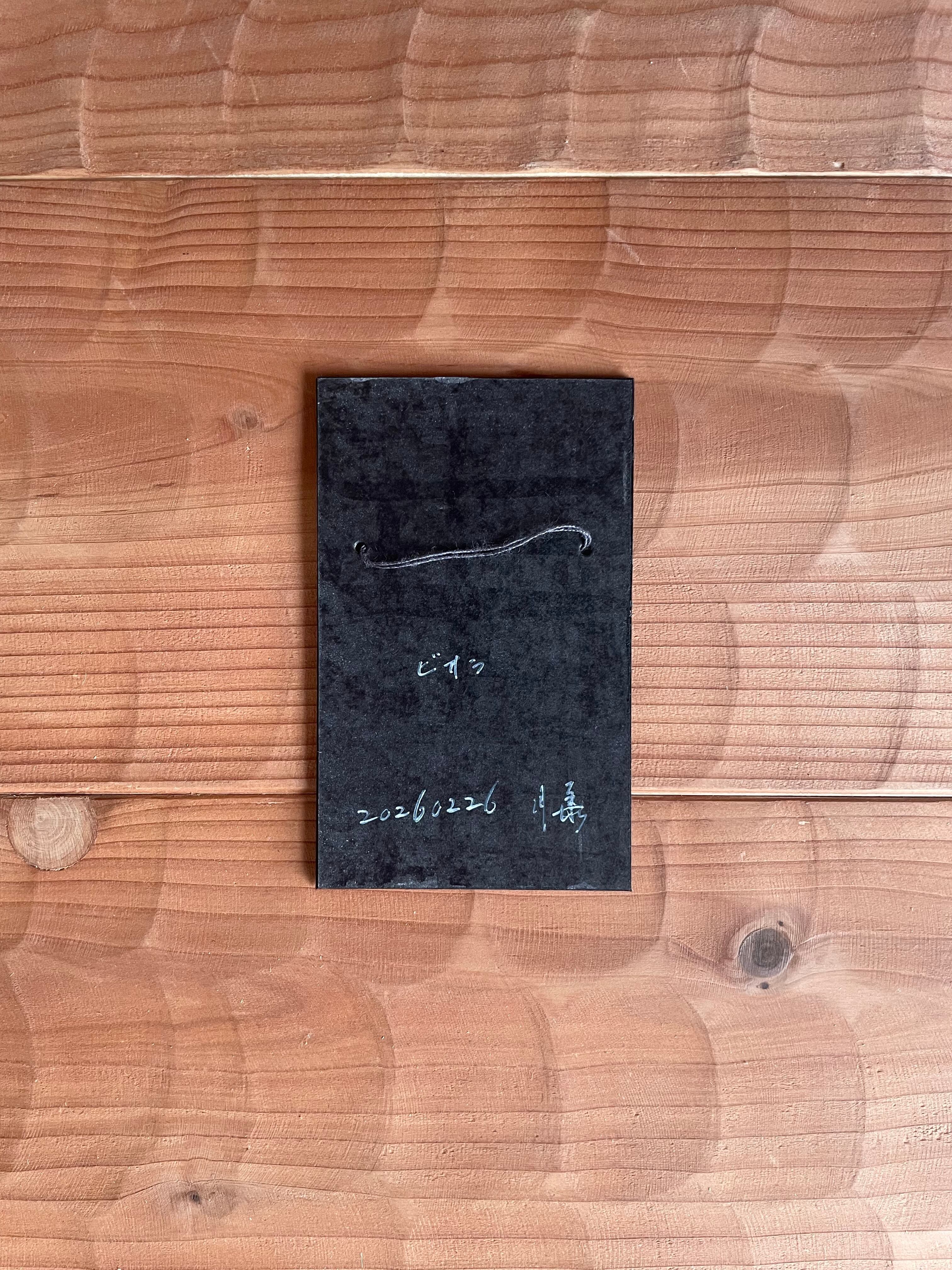 裏面に紐を通した、壁掛けが可能な仕立てになります。