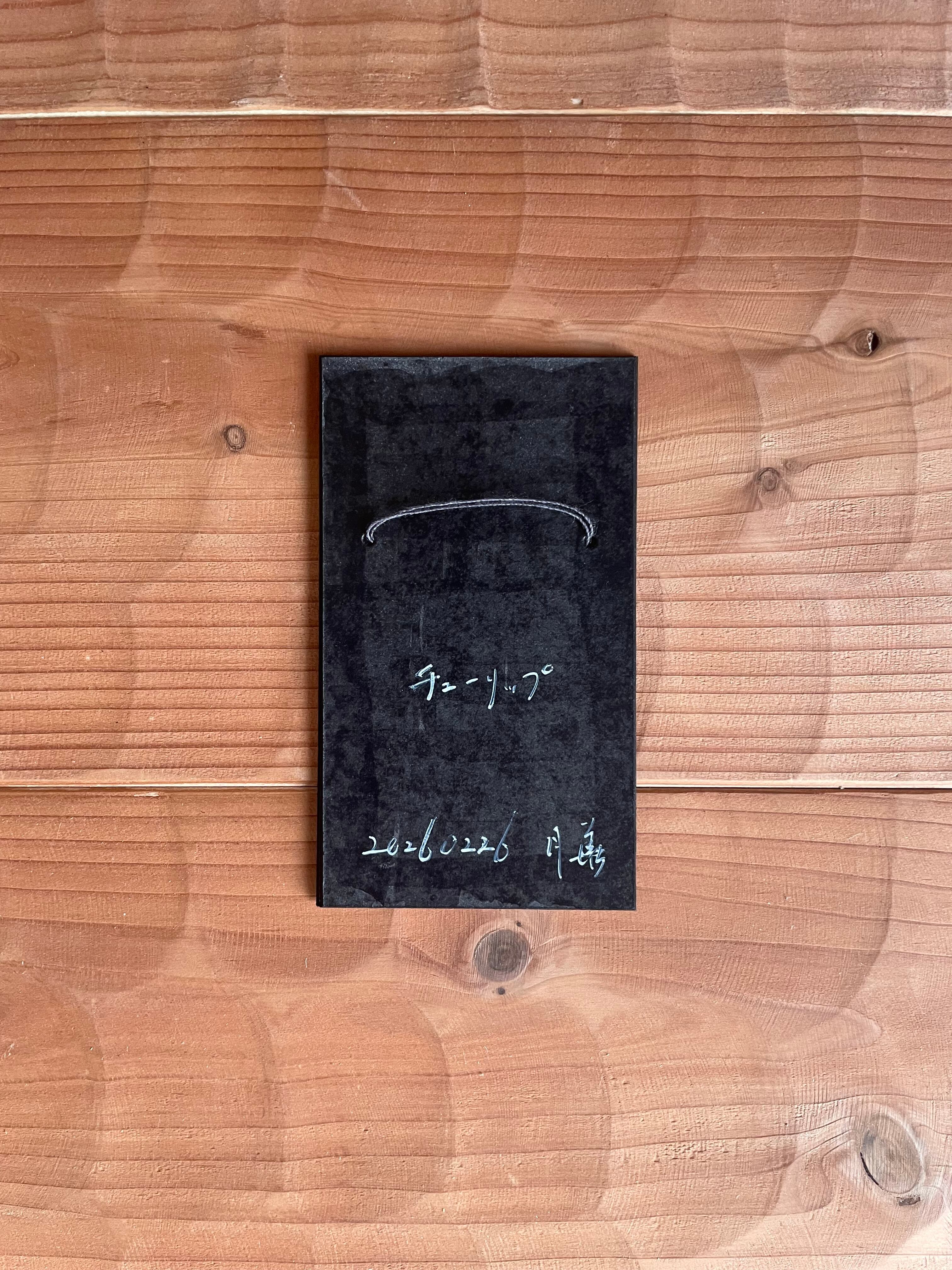 裏面に紐を通した、壁掛けが可能な仕立てになります。